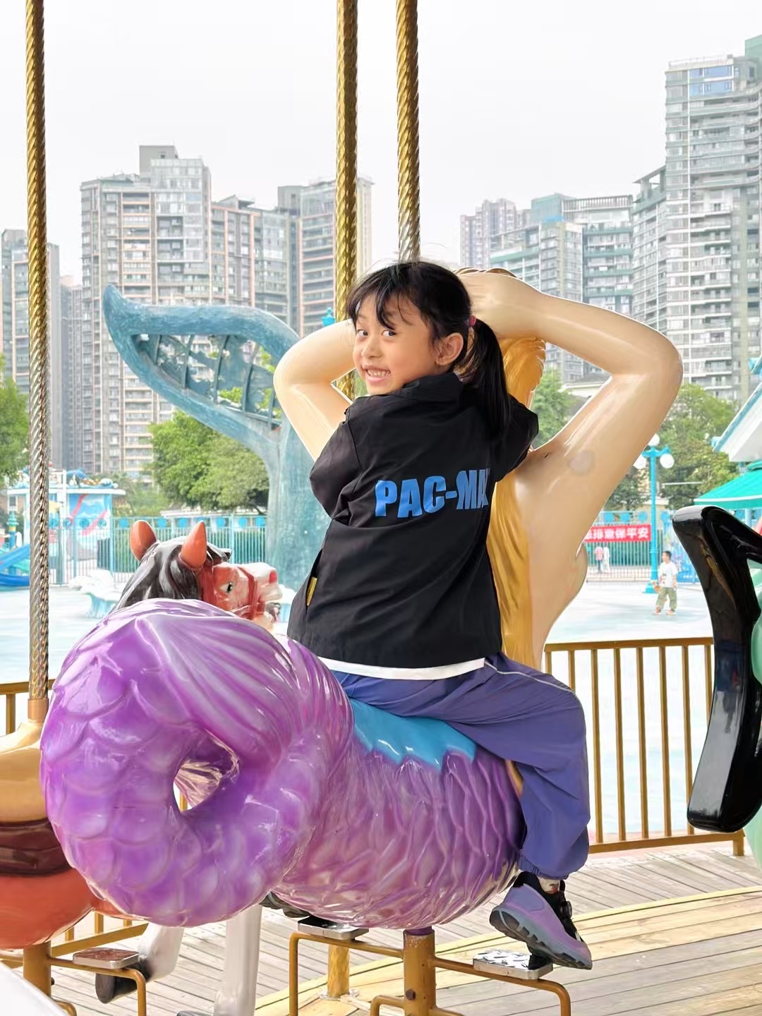 海盗船“呼——”地荡到最高处,我的心也跟着飞起来,又害怕又兴奋,尖叫得嗓子都快哑了!旋转木马上的小马儿“哒哒哒”跑,我假装自己是草原上的骑士,风呼呼吹过耳边,太酷啦!