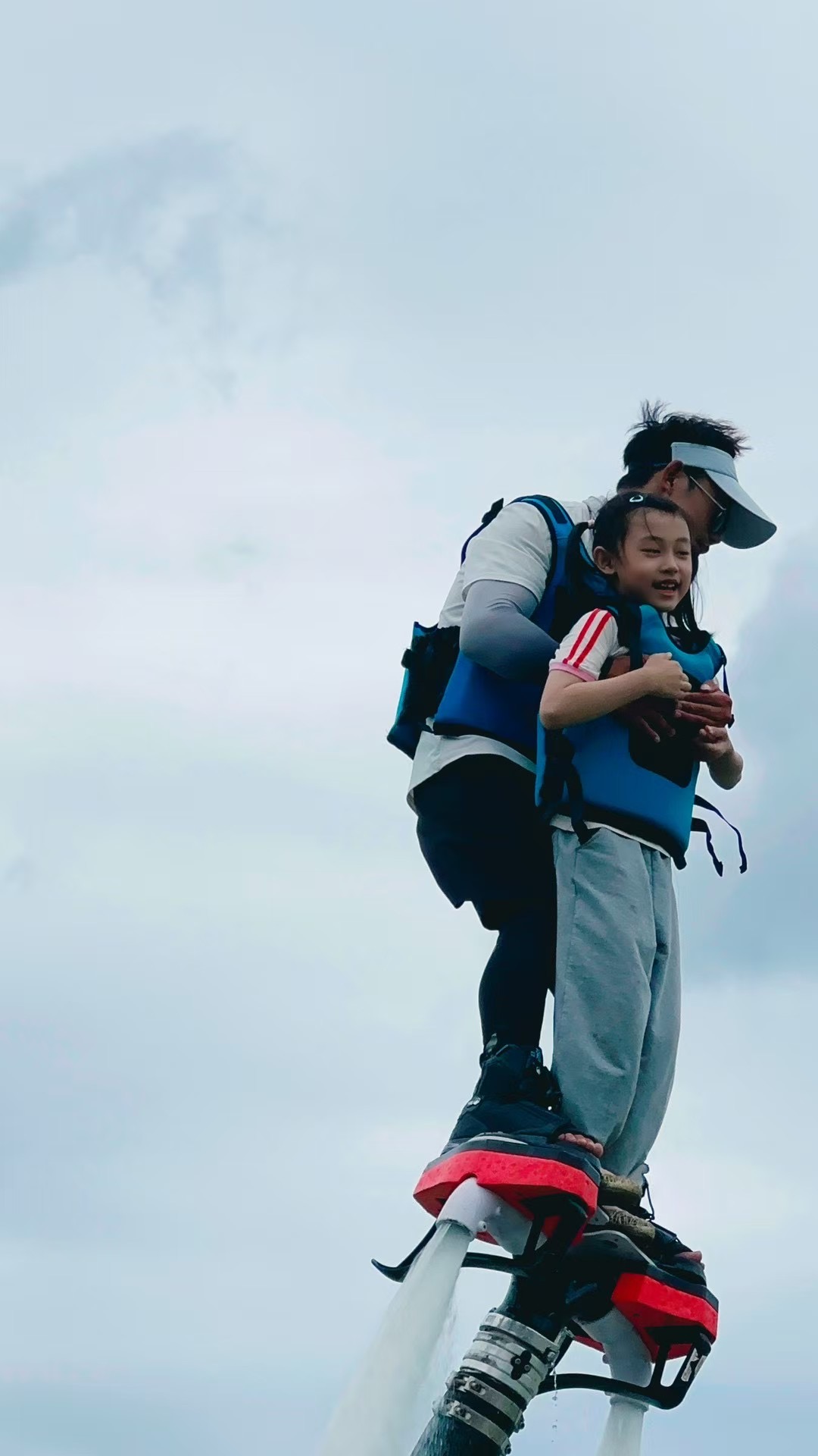 最神奇的是“水上飞人”!一个叔叔脚上喷出高高的水柱,“唰”地飞上天,还在空中翻跟头,像超人一样!我瞪圆眼睛张大嘴,差点忘记鼓掌啦!
